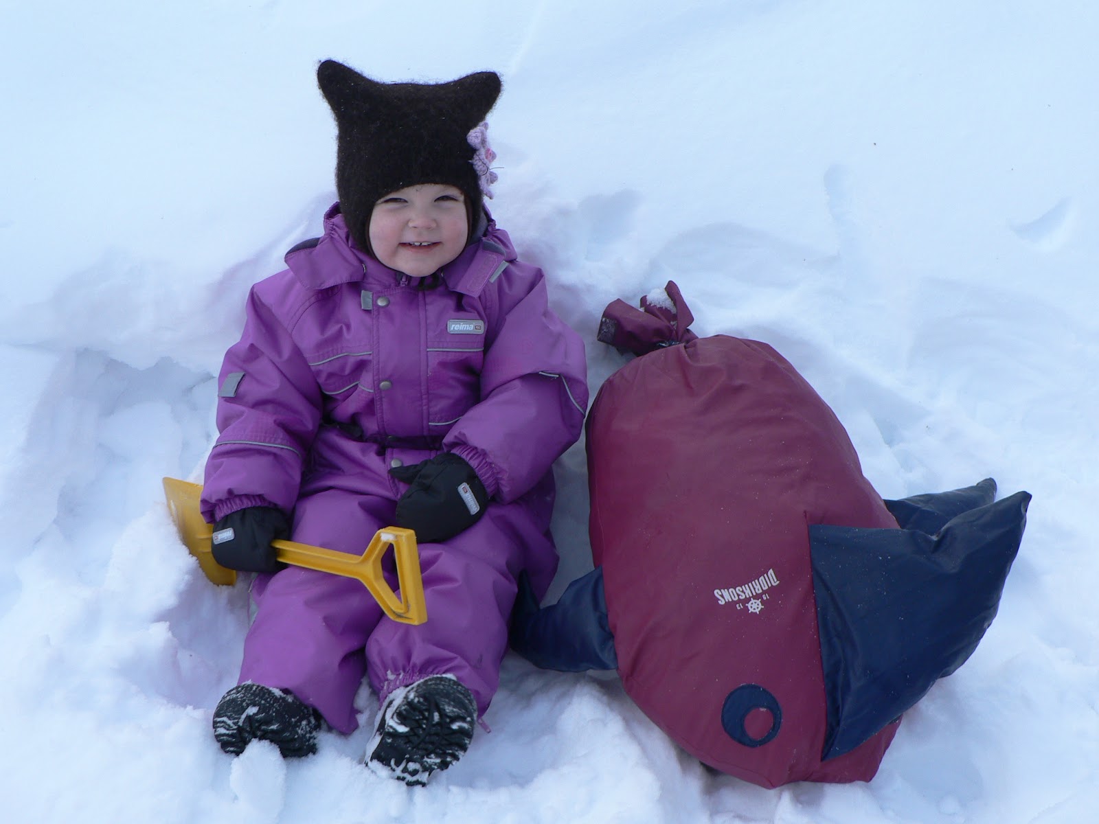 Heh. Tällainen kiva kalakaveri pulkkamäkeen tuli väsättyä pikaompeluksena kun materiaalit löytyi omasta takaa ja tää oli vaan niin hauska idea. :-D Idean lähteenä kirjastosta lainattu kirja
